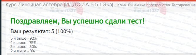 Для студентов ИДДО НИУ «МЭИ» по предмету Линейная алгебра и аналитическая геометрияКурс Линейная алгебра - КМ-4. Линейные пространства. ТестированиеКурс Линейная алгебра - КМ-4. Линейные пространства. Тестирование