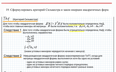19. Сформулировать критерий Сильвестра и закон инерции квадратичных форм.