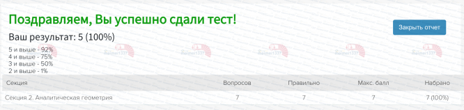 Ответы к заданиям КМ-2: КМ-2. Аналитическая геометрия. Тестирование - 100%