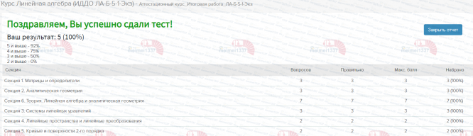 Ответы к экзамену Экзамен: Полный курс Линейная алгебра Итоговая работа - 100%