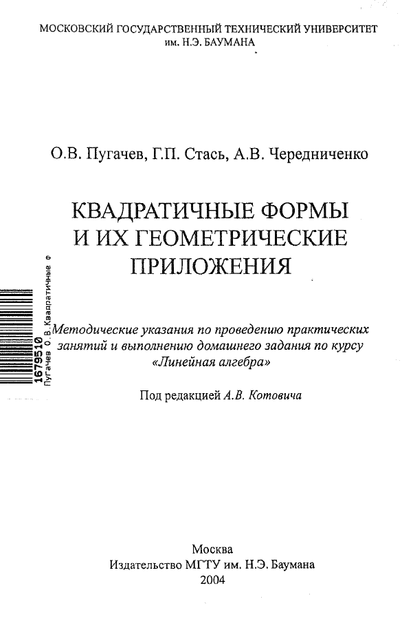 Книга: МУ - Квадратичные формы и их геометрические приложения