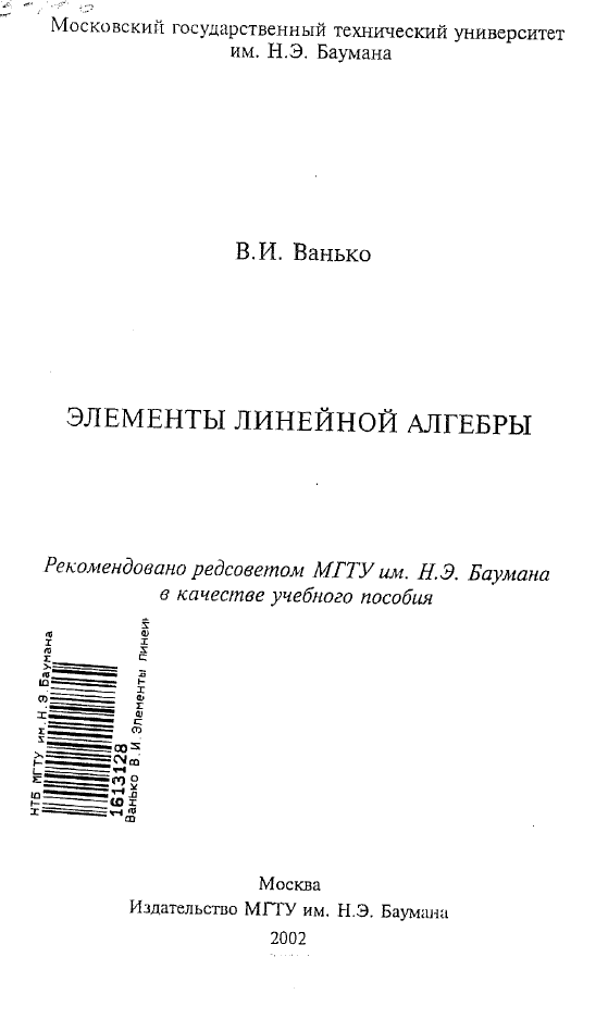 Для студентов МГТУ им. Н.Э.Баумана по предмету Линейная алгебра и аналитическая геометрияМУ - Элементы линейной алгебрыМУ - Элементы линейной алгебры 2019-01-08СтудИзба