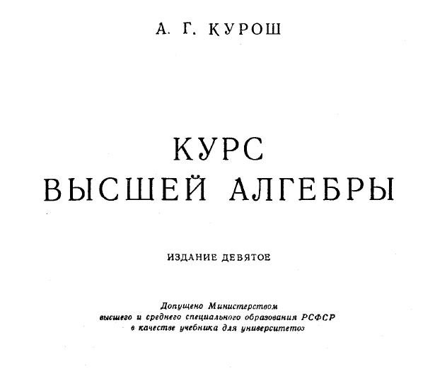 Для студентов НИУ «МЭИ» по предмету Линейная алгебра и аналитическая геометрияА.Г. Курош - Курс высшей алгебрыА.Г. Курош - Курс высшей алгебры