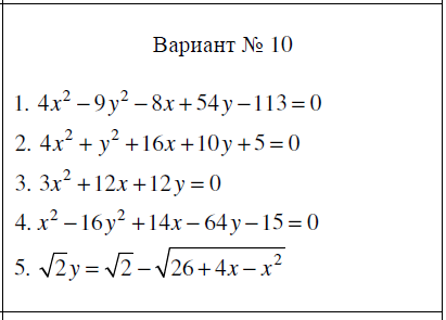 ДЗ 2.1: Кривые второго порядка вариант 10