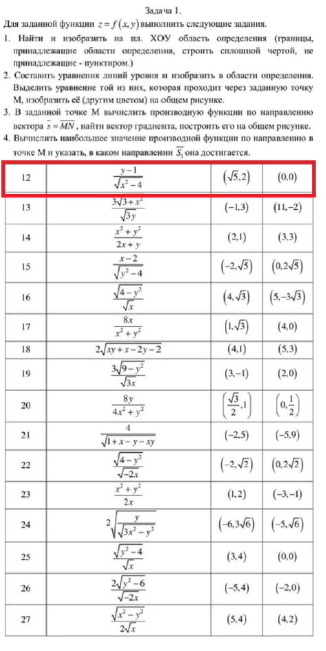ДЗ 2: Функции нескольких переменных вариант 12