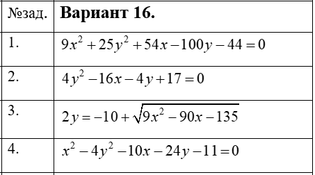 ДЗ 2.1: Кривые второго порядка вариант 16