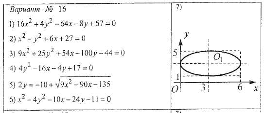 ДЗ 2.1: Кривые второго порядка вариант 16