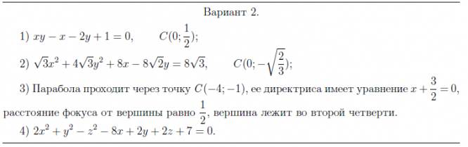 ДЗ 2: Кривые и поверхности второго порядка вариант 2