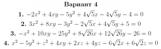 ДЗ 1.2: Кривые и поверхности второго порядка вариант 4