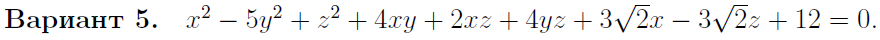 • Задача 4. Уравнение поверхности второго порядка на плоскости Oxyz привести к каноническому виду, указав: