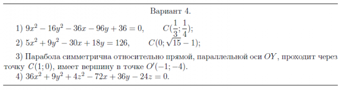 ДЗ 2: Кривые и поверхности второго порядка вариант 4