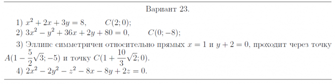 ДЗ 2: Кривые и поверхности второго порядка вариант 23