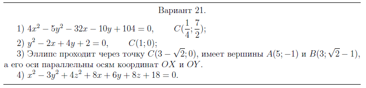 ДЗ 2: Кривые и поверхности второго порядка вариант 21