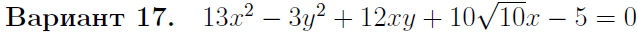 • Задача 3. Уравнение кривой второго порядка на плоскости Oxy привести к каноническому виду, указав: