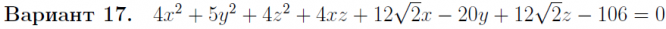 • Задача 4. Уравнение поверхности второго порядка на плоскости Oxyz привести к каноническому виду, указав: