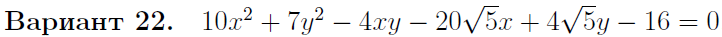 • Задача 3. Уравнение кривой второго порядка на плоскости Oxy привести к каноническому виду, указав: