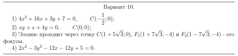 ДЗ 2: Кривые и поверхности второго порядка вариант 10