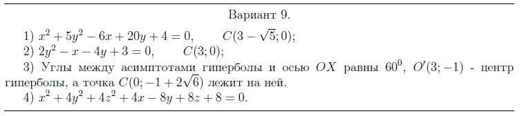 ДЗ 2: Кривые и поверхности второго порядка вариант 9