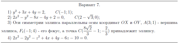 ДЗ 2: Кривые и поверхности второго порядка вариант 7