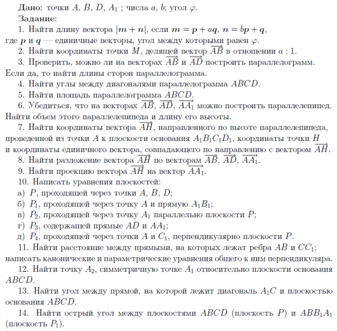ДЗ 1: Векторная алгебра и аналитическая геометрия вариант 9
