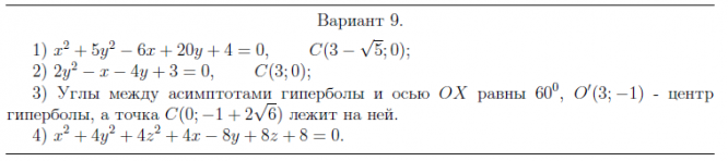 ДЗ 2: Кривые и поверхности второго порядка вариант 9