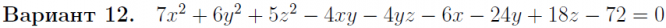 • Задача 4. Уравнение поверхности второго порядка на плоскости Oxyz привести к каноническому виду, указав: