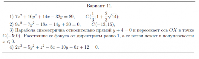 ДЗ 2: Кривые и поверхности второго порядка вариант 11