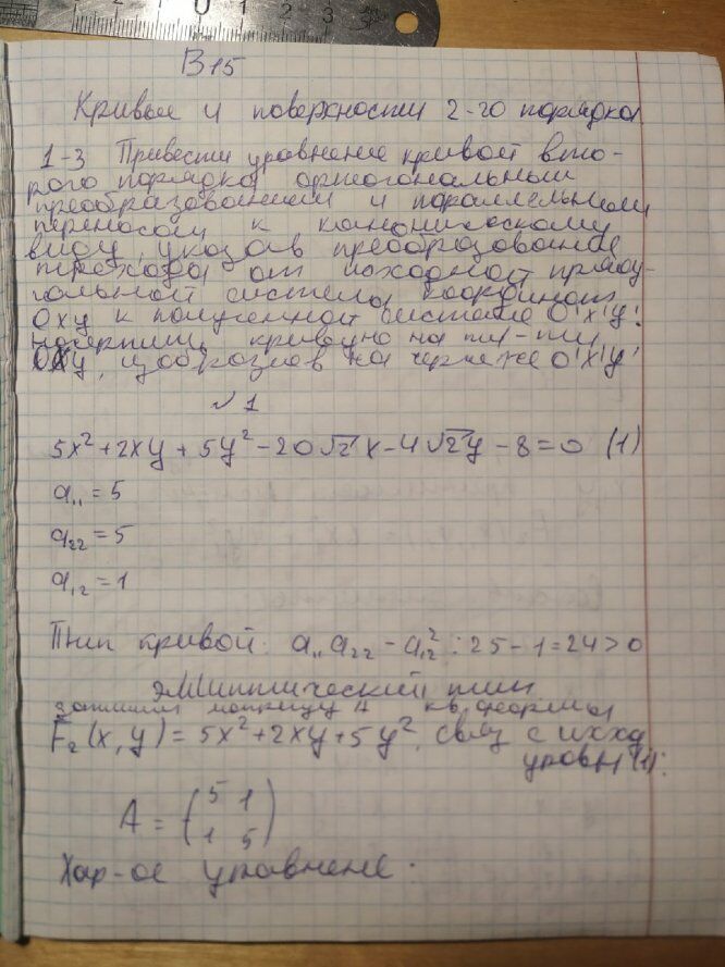ДЗ 1.2: Кривые и поверхности второго порядка вариант 15
