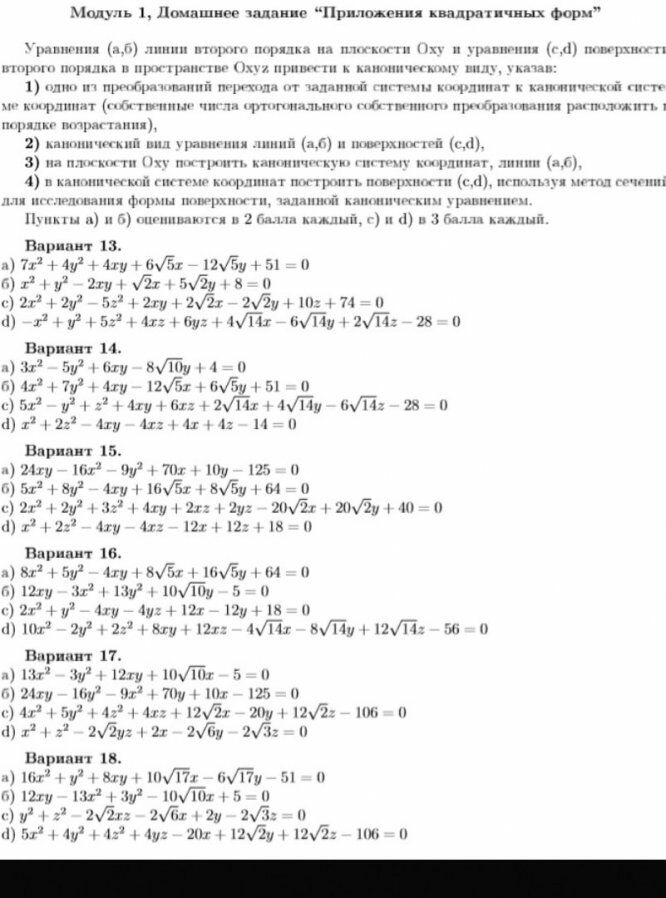 ДЗ 1.2: Кривые и поверхности второго порядка вариант 17