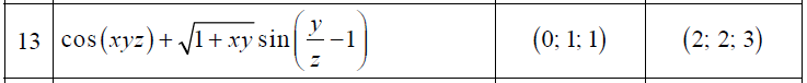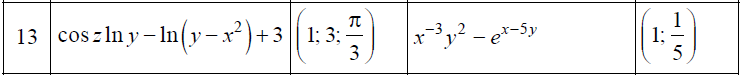 • Задача 2. Для заданной функции неявно найти dz в вариантах №1-15; ∂z/∂x, ∂z/∂y в вариантах №16-30