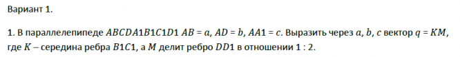 ДЗ 1: Векторная алгебра и аналитическая геометрия вариант 1