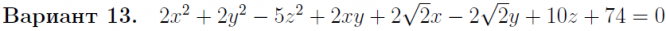 - Задача 4. Уравнение поверхности второго порядка на плоскости Oxyz привести к каноническому виду, указав: