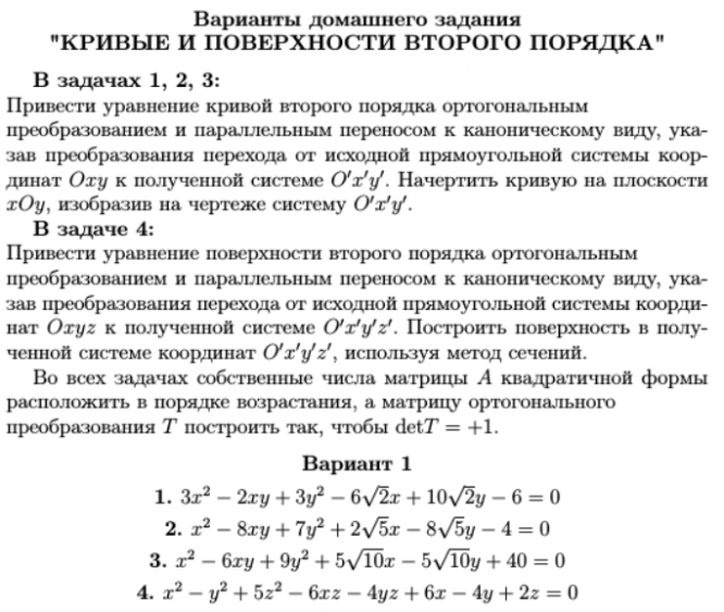 ДЗ 1.2: Кривые и поверхности второго порядка вариант 1