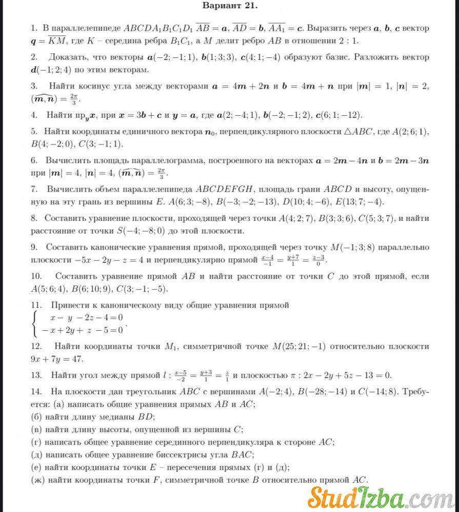 ДЗ 1: Векторная алгебра и аналитическая геометрия вариант 21