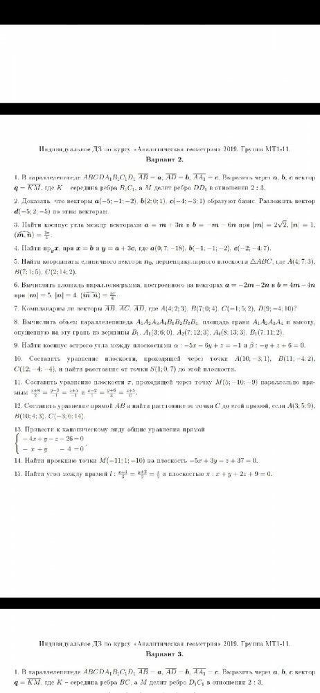 ДЗ 1: Векторная алгебра и аналитическая геометрия вариант 2
