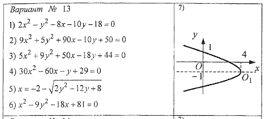 ДЗ 2.1: Кривые второго порядка вариант 13