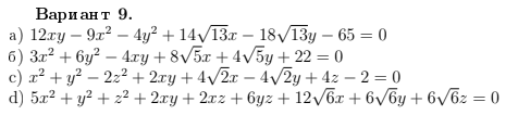 ДЗ 1.2: Кривые и поверхности второго порядка вариант 9