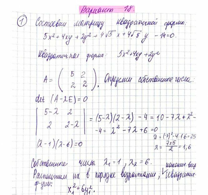 ДЗ 1.2: Кривые и поверхности второго порядка вариант 18