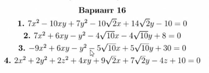 ДЗ 1.2: Кривые и поверхности второго порядка вариант 16