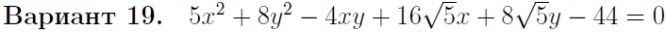 • Задача 3. Уравнение кривой второго порядка на плоскости Oxy привести к каноническому виду, указав: