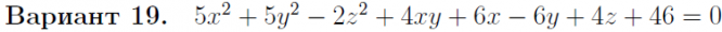 • Задача 4. Уравнение поверхности второго порядка на плоскости Oxyz привести к каноническому виду, указав: