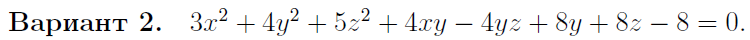 • Задача 4. Уравнение поверхности второго порядка на плоскости Oxyz привести к каноническому виду, указав: