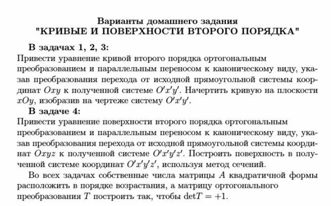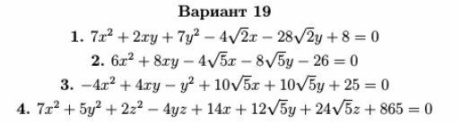 ДЗ 1.2: Кривые и поверхности второго порядка вариант 19
