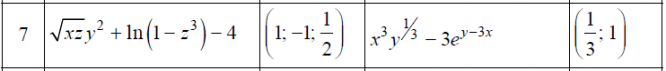 • Задача 2. Для заданной функции неявно найти dz в вариантах №1-15; ∂z/∂x, ∂z/∂y в вариантах №16-30
