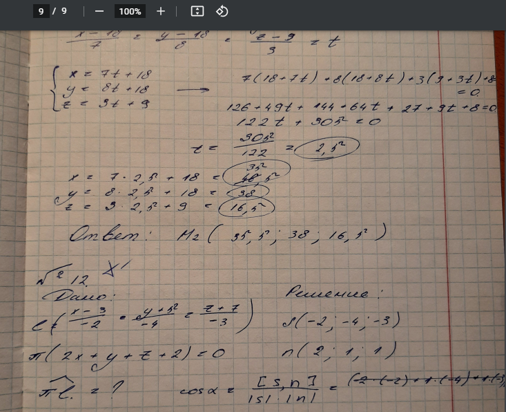 ДЗ 1: Векторная алгебра и аналитическая геометрия вариант 10