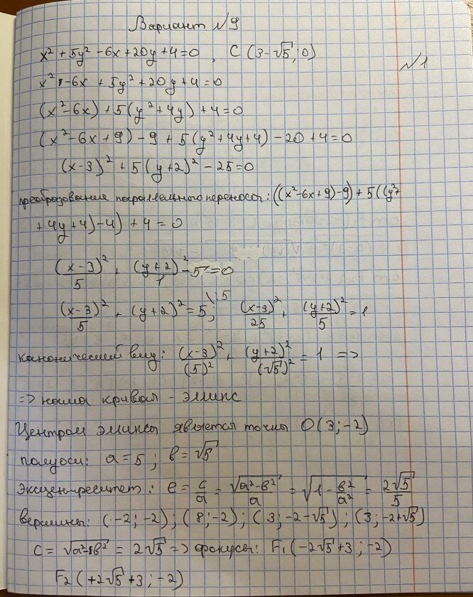 ДЗ 2: Кривые и поверхности второго порядка вариант 9