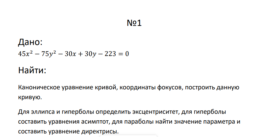 Типовой расчет по кривым 2го порядка принятый Леванковым 8 вариант