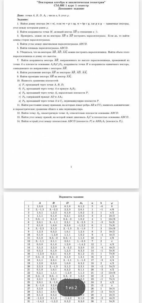 ДЗ 1: Векторная алгебра и аналитическая геометрия вариант 8
