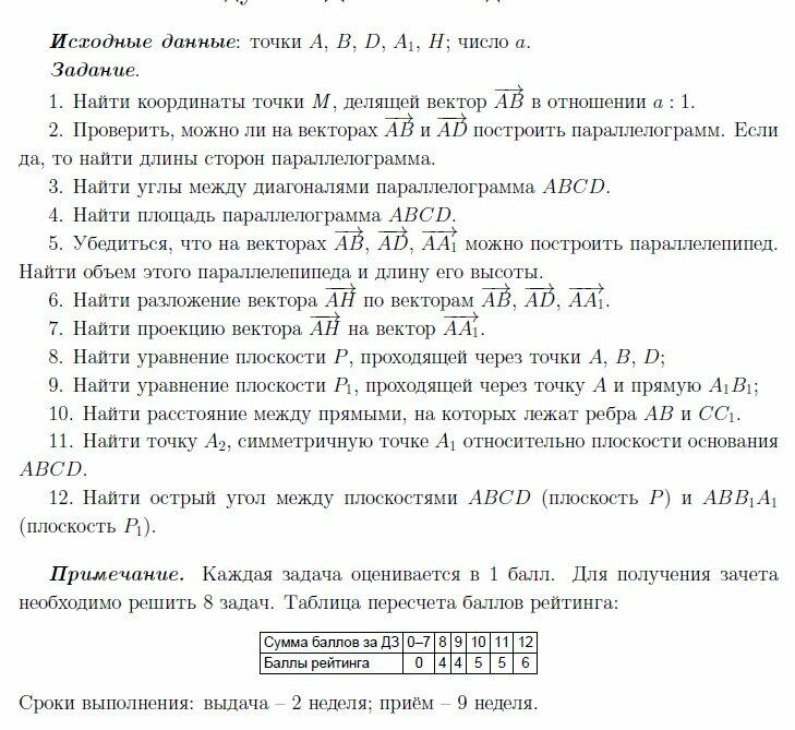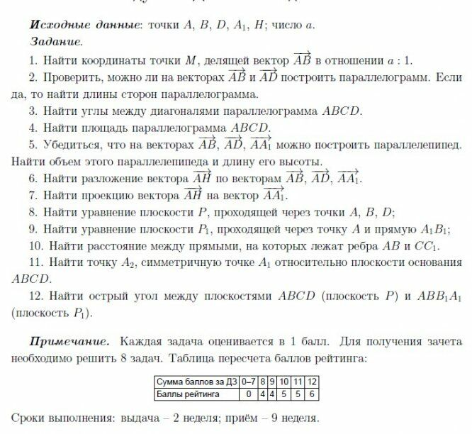 ДЗ 1: Векторная алгебра и аналитическая геометрия вариант 10