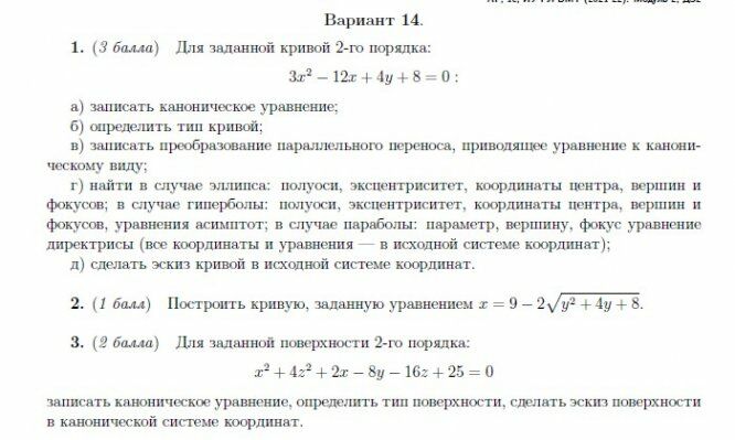 ДЗ 2: Кривые и поверхности второго порядка вариант 14